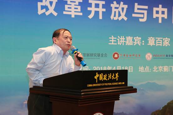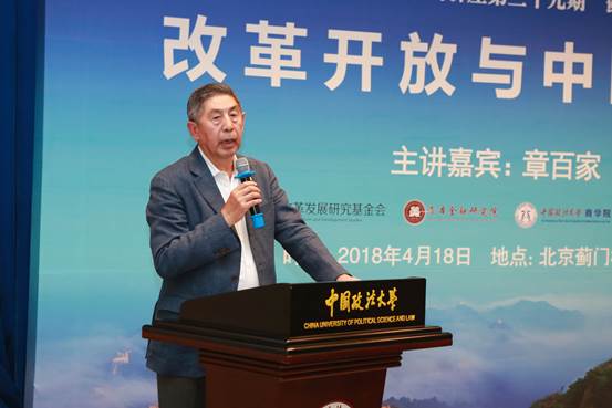 章百家指出,经济体制改革最突出的特点就是采取渐进方式,先易后难,逐步推进,并根据实践发展不断调整思路。随后其就中国经济体制改革、对外开放特点以及双轨制度进行了说明。章百家强调,上世纪80、90年代、21世纪前十年,中国经济连上三个台阶与中国经济体制变化、中国经济与世界经济关联度的提高密不可分。