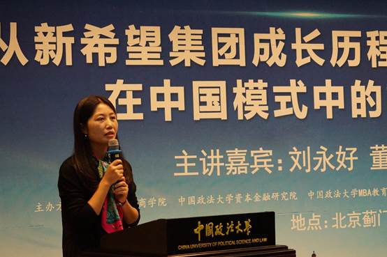 工商管理系主任王玲教授以“民营企业、中国模式、新希望集团的成长”三大关键词进行心得分享。其表示,民营经济具有其独特的重要性,民营企业的中国模式是学界所研究的重要问题。“共识、共创、共享、共担”,“所有好的产品都是人的智慧所创造。”均是对中国模式的最好总结。而“创道、善道、恒道”则是中国成功企业家的共有特质,以“探索不确定的未知”。