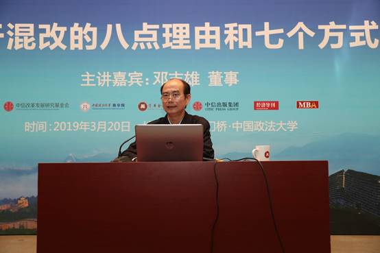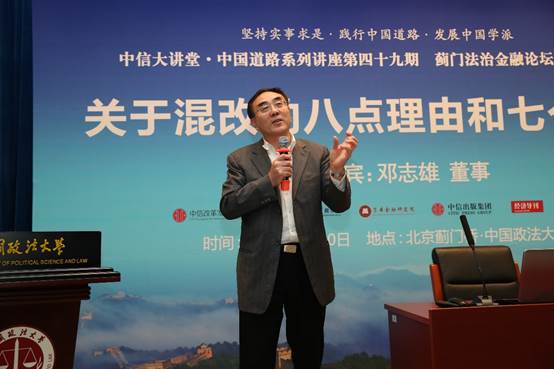 学院路校区科研楼学术报告厅举行。本次论坛邀请中国电信、中国铝业、保利集团外部董事,国务院国资委产权管理局原局长、规划发展局原局长邓志雄主讲《关于混改的八点里由和七个方式》。