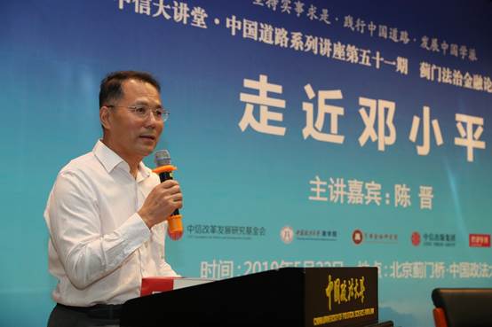 中信改革发展研究基金会秘书长郭克彤在致辞中表示,中信改革发展研究基金会和孔丹理事长特别重视今天的论坛,为此特意与陈晋会长见面,并邀请中国工商银行原行长、中信改革发展研究院资深研究员杨凯生担任点评嘉宾。中信集团是在邓小平同志的亲自支持下,荣毅仁同志创办的大型国有企业,没有改革开放,就没有中信集团。邓小平同志作为改革开放总设计师,他的思想理论时至今日都具有重大影响,陈晋会长长期从事党史研究,相信今天的讲座一定会给我们带来丰富的精神食粮。