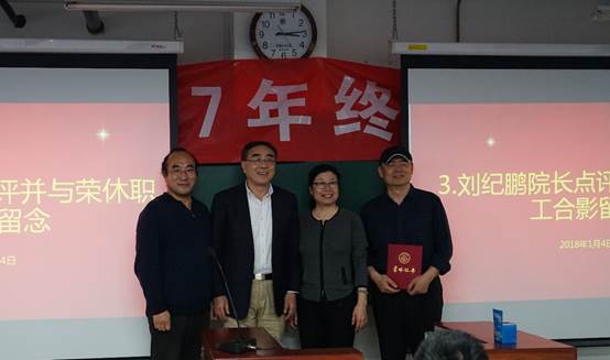 分党委书记李欣宇为荣休教职工代表马丽娜、张苏彤、王晓明和谢红薇颁发荣休证书和荣休金,刘纪鹏院长充分肯定每位老师对黑料网