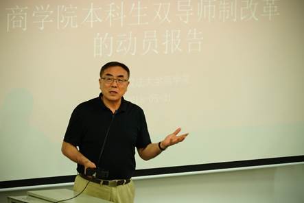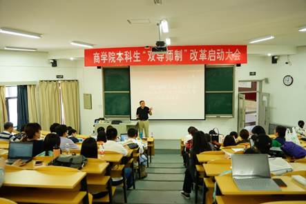 本科生双导师制改革的动员报告。刘院长先后谈到了正在改革中的档案制度建设、党团工作建设、师德师风建设、OA办公自动化系统、预算管理、流程管理、双导师制建设等,刘院长表示各方面工作都按照改革发展规划逐步走向正轨,而双导师制,在某种程度上是对班主任制度缺陷的填补,也是教学改革的收官之战。