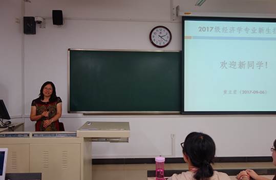 理事会,简要说明了经济学学科概况与学习特点。黄立君老师则深入浅出地介绍了经济学本科生培养方案、课堂教学与课堂实践教学,并以“为者常成,行者常至”与大家共勉。最后,邓达老师与同学们交流大学四年应如何度过,希望大家在大学中学会利用资源,丰富大学生活。
