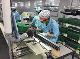 原材料入库后就进入生产环节,但在将物料分配到生产线之前要根据各车间需求对原材料进行分包和预加工。亲自体验了分包和预加工工作的朱宇轩感慨到,“熟练的师傅们一上午能完成5000个电容剪脚工作,而我一上午仅完成了2000个,可见简单的工作要做好也要下功夫。”