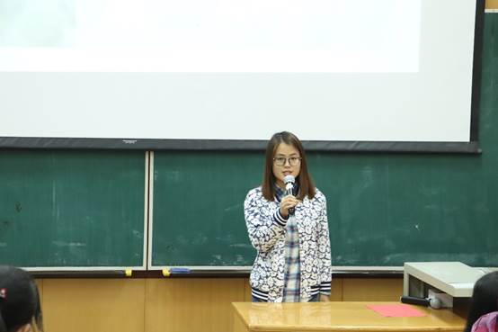 随后,分党委副书记何欣上台发言,她宣读了2015级优秀头雁名单,并为7位优秀头雁颁发奖品及证书。颁奖过后,何老师详细介绍了我院雁阵计划的活动理念、活动目标、活动形式,并表达了自己对于新头雁的希望和期许。她指出,雁阵计划作为我院学风建设精品活动,历史悠久且发展成熟,与西方名校先进的学长制教育方式接轨,在我院实施多年,得到众多老师的肯定,也受到广大学子的好评。雁阵计划致力于通过学生自我教育、自我管理以及自我发展的三位一体团队化创新建设,由优秀头雁带领小雁,双向学习、共同进步。何欣老师精彩的演讲增进了新生对雁阵计划的了解,赢得了热烈的掌声。