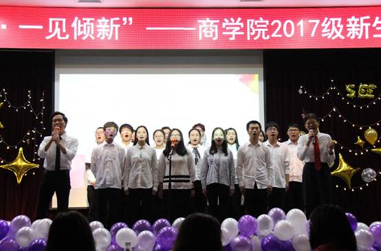 柔和的旋律,悠扬的音符,工商管理1703班的女生,用天然的声线描绘着青春的朝气。随后,三个阳光的少年带来表演《逐梦演艺圈》,他们动听的歌喉赢得了全场观众的欢呼。