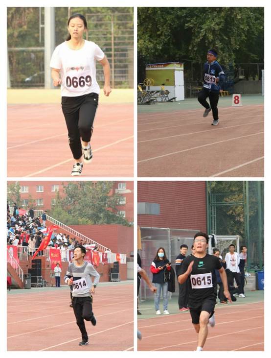 女运动员杨智童以15.185秒的优异成绩荣获女子100米甲组第一名,鼓舞了参赛队员的士气,更增添了商院新生的信心。商院短跑男运动员们也不甘示弱,王一帆同学在100米决赛中获得甲组第四名的好成绩。