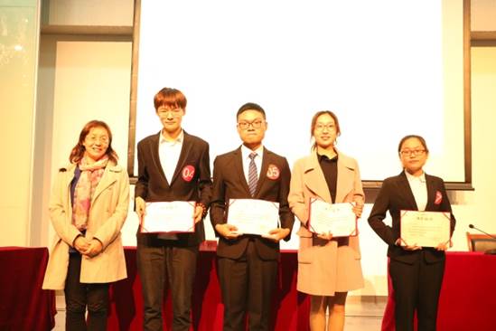 经过各位评委老师三轮的打分和现场观众的投票,在复赛中获胜的选手有:郭澍泽,谢明杰,纪懿铭,胡欣宇(按名次高低排列)。最后,外国语学院的林海虹老师为四位获胜选手颁发了荣誉证书。