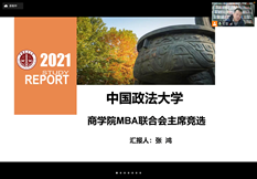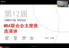 办学理念和MBA办学特色的强烈认同;同时阐述了自己如有幸当选,将为了更好的服务同学而做出一系列努力。对于法大MBA联合会接下来工作的展开以及相关学生活动的计划提出了自己的想法,以实现自己及团队更好地服务同学,服务MBA品牌的目标。