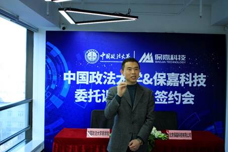 图:北京保嘉科技董事长盛建锋介绍公司发展情况