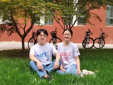 同样非常重视文化衫的设计。经过领导老师和同学们的积极讨论,图中的文化衫凭借其包含深厚情谊的设计理念和简约的设计风格在众多款设计中脱颖而出。此毕业文化衫分男女款,胸前MISS YOU两字分别有粉色和蓝色。粉色蒙版取自动漫,代表浪漫和希望;蓝色蒙版取自于昌平校区的天空,代表想念和自由。“人生不相见,动如参与商”,胸前英文传达了“纵然因疫情无法相见,但府学路27号永远是你们的家,我会想你们”的感情。