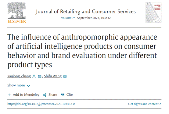 近日,由我院工商管理系张亚琼老师作为第一作者,与其指导的硕士研究生王世富同学共同在SSCI高水平期刊《Journal of Retailing and Consumer Services》上发表学术论文《The influence of anthropomorphic appearance of artificial intelligence products on consumer behavior and brand evaluation under different product types》。