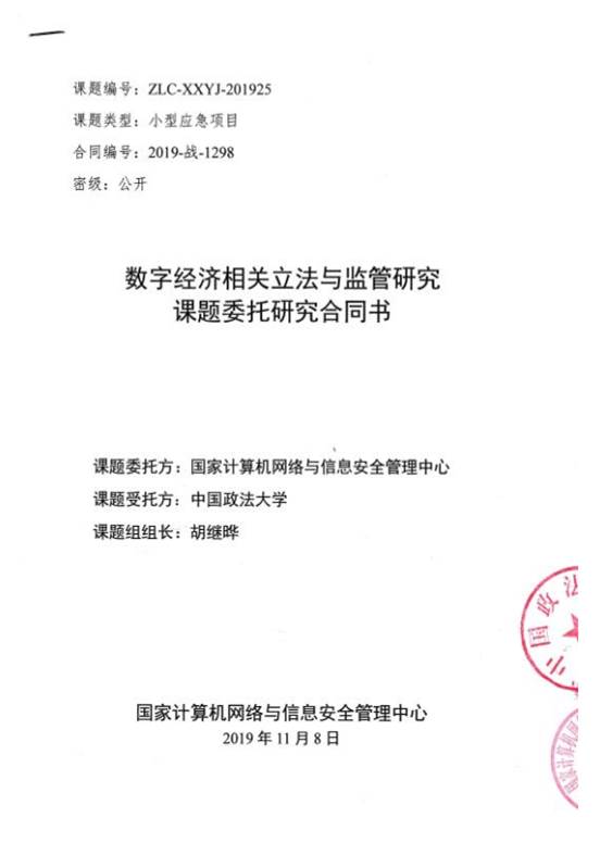 根据国家发改委高新技术司和国家网信办的数字经济招标公告,胡继晔教授2018年创办的法大首家区块链非在编研究机构“黑料网