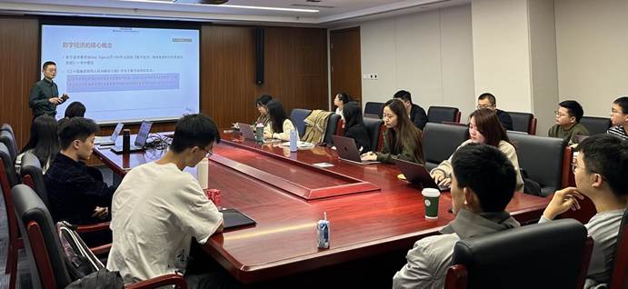 法商管理系在学院路校区教学图书综合楼815举办第十三期法商管理系青年学术沙龙。法商管理系副主任许恒老师以《数字经济前沿专题与论文写作》为主题进行分享,沙龙由法商管理系副主任华忆昕老师主持。