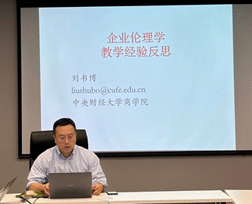 刘书博副教授则以“商业伦理与批判性话语研究”为主题分享了企业伦理学教学经验、方向。他指出,通识博雅教育、实践层面帮助学生笃定人生选择与行为,判断是非曲直是商业伦理课的特点。商业伦理学的内容有关注商业企业、制度和活动,制度伦理问题、组织伦理问题、个人伦理问题等方面。