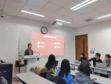 会议的第二个阶段,获得北京市第十三届青教赛二等奖的王尧老师分享了比赛经验和心得体会。王尧老师介绍了青教赛的赛制,汇报了自己以《管理学》这门课程参赛的过程,并且分享了她有关“充分准备”与“发挥应变”、“课程内容”与“讲授技巧”、“主题选择”与“深挖求精”、“比赛锻炼”与“日常教学”等方面的反思。
