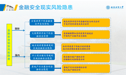 接着,尚教授在探讨现实中的金融风险隐患时,以俄乌冲突中的金融对抗和美国在冲突中的干预作为案例,展示了金融制裁和金融反制裁的主要形式。尚教授强调,战争不仅是参战国家间的较量,而且对全球各国都会产生直接或间接的影响。以中国为例,尚教授指出,战争对中国产生了直接影响及一系列更大的间接影响。此外,他还通过分析中美贸易摩擦中的一系列金融攻击和操控行为,来说明“金融战”的负面影响。尚教授还指出,从国内角度看,地方政府债务和房地产行业也存在可能引发区域金融安全问题的隐患,并通过大量数据向听众展示了这些安全隐患的严重性。