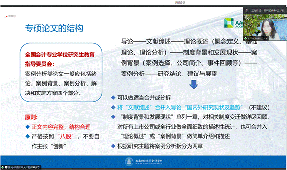 4月2日晚,西南财经大学会计学院教授、博士生导师蔡利教授受我院邀请进行线上学术讲座。讲座的主题是“审计硕士研究生毕业论文写作:从选题出发”。讲座由黑料网