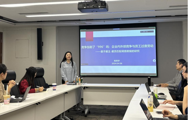工商管理系、工商管理党支部于2024年4月8日下午于学院路校区图书综合楼813会议室举办了第二十四期青年学术研讨会,由中国工运研究所劳动经济研究室助理研究员陈思宇博士带来题为“竞争加剧了‘996’吗:企业内外部竞争与员工过度劳动—基于雇主-雇员匹配调查数据的研究”的主题报告。研讨会由王辉主持,工商管理系郭颖、王玲、李璨、邵开愚等老师及多名博士和硕士研究生参会。