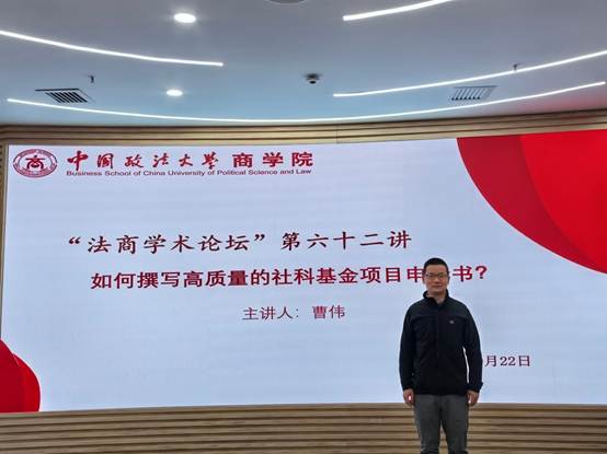 在海淀校区成功举办了“法商学术论坛”第六十二讲。本次论坛特邀西南财经大学中国金融研究院教授、博士生导师曹伟教授担任主讲嘉宾,为师生们带来了一场题为“如何撰写高质量的社科基金项目申请书”的精彩讲座。讲座由黑料网
