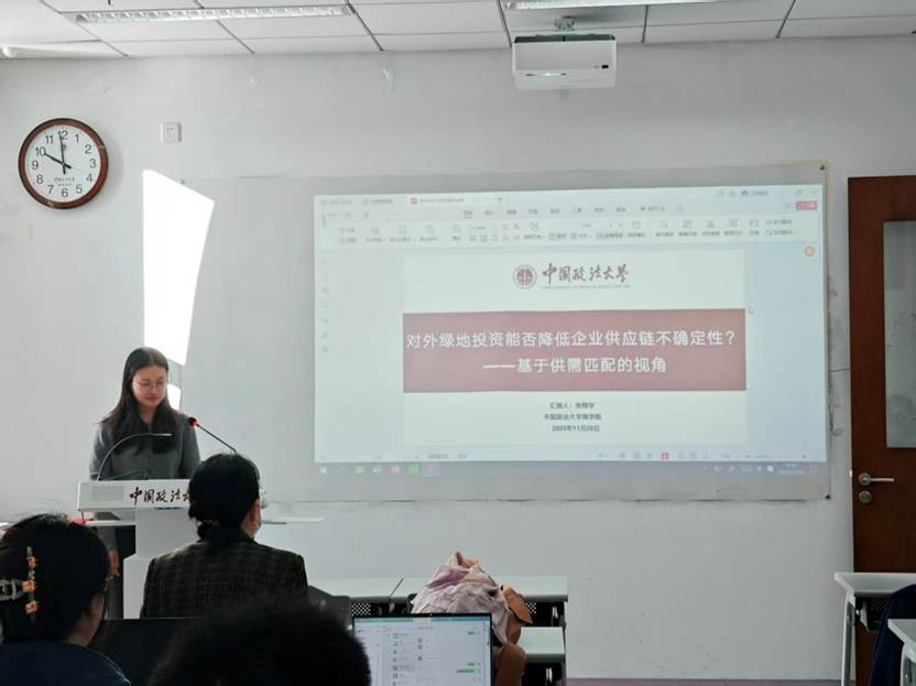 研讨会由两位创新经济学博士研究生主讲。2025级博士生张翔宇同学首先以《对外绿地投资能否降低企业供应链不确定性?——基于供需匹配的视角》为题进行了报告。探讨企业通过对外绿地投资这一战略性行为,如何有效应对和降低其在全球范围内面临的供应链不确定性,为理解企业国际化经营的风险管控提供了新的实证证据和理论启示。