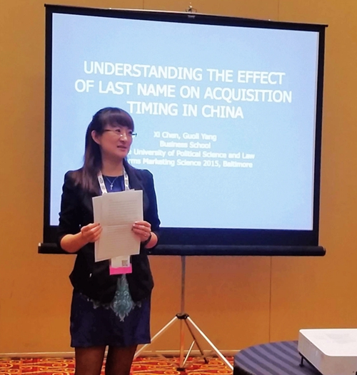 陈曦副教授长期从事市场营销方面的教学研究工作,学术研究具有很好的前沿性。她每年参加Informs Marketing Science会议并做报告。通过该年会的交流,可以了解到全球各高校市场营销学的研究进展与前沿,对我院市场营销学科的发展与专业建设起到了积极的促进作用。