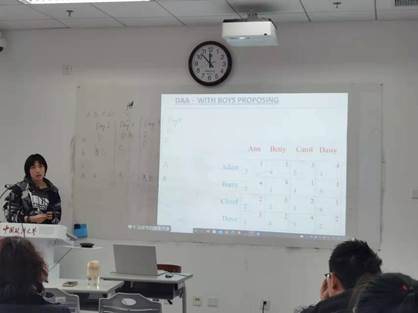马思宇老师首先通过男女生在婚恋过程中是否主动进行配对的案例向大家介绍了延迟接受算法(Deferred Acceptance Algorithm, DAA),并指出在该算法框架下主动出击能够获得比被动接受更优的结果。