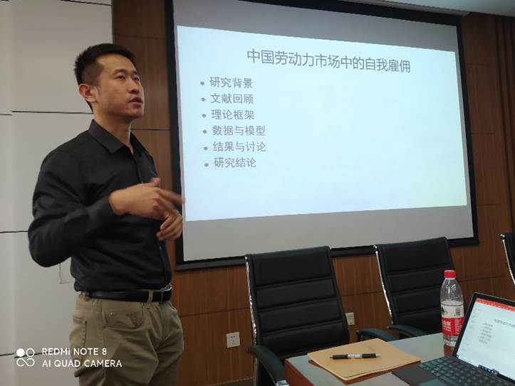 王辉老师针对中国劳动力市场下的自我雇佣这一主题,侧重对原因与结果的探讨,并围绕研究问题提出、研究设计与数据收集、数据结果与主要结论等方面对自己的研究成果进行了介绍,并就研究的理论与实践意义、研究方法工具的选择、数据分析策略、未来可能的研究方向等问题与现场师生展开了热烈而具有启发性的讨论,本次会议最终在积极而具有启发性的氛围中圆满结束。