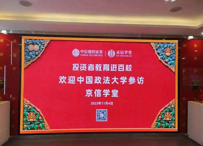 2023年11月4日下午14:00,中信建投证券投资教育基地参观活动如期开展。本次采用线下参观的形式,带领同学们实地了解教育基地,学习证券知识,聆听证券史讲解,并与证券相关专家及机构老师交流互动等,是一次“干货”满满的体验。