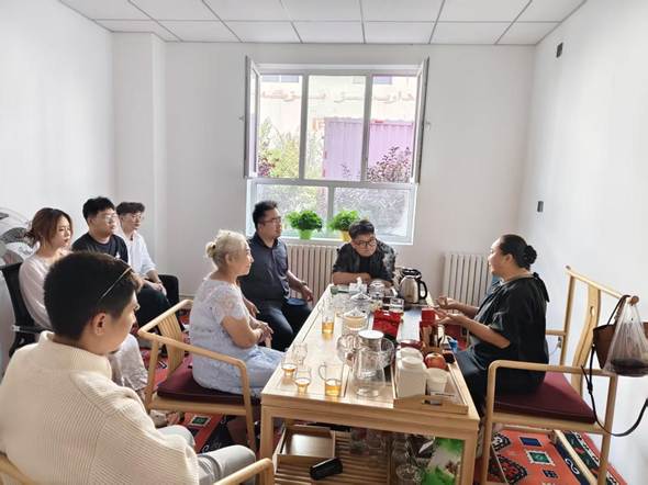 最后一日,两校联合团队来到霍城县茶产业文化园进行参观学习。相关负责人细致讲解自己回到家乡创业的心路历程,并邀请了少数民族中医药专家为师生们讲解新疆特色药茶的养生价值,现场演示了传统药茶的冲泡技艺。师生们在专家指导下亲身体验了药茶配制,品尝了多种特色茶饮,共同探讨茶文化与现代健康生活的融合。团队成员表示,这次活动不仅学到了药茶知识,更感受到中华民族医药文化的博大精深,为传统文化研究提供了新的视角。作为新时代的青年,应当积极投身乡村振兴战略,利用所学知识推动农业现代化进程、助力农民增收,在实践中践行“把论文写在祖国大地上”的使命担当。