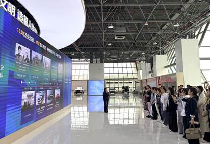 在参访过程中,讲解员系统介绍了长安汽车从传统制造企业向智能化、新能源化转型的发展历程,以及最新车型的技术亮点与市场定位。随后,师生进入智能化生产车间,乘坐观览车实地观摩高度自动化的生产线。从冲压、焊接、涂装到总装,全流程的机器人协同作业、精准调度与信息化管理,使同学们对智能制造有了更加直观和深入的理解。