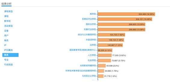 (“学习通”后台数据:前四周全校教学单位活跃度排名)