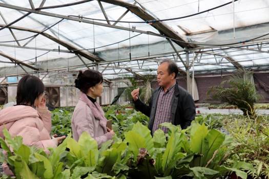 图:北京艾比蒂生物科技有限公司秦总介绍温室大棚花卉情况