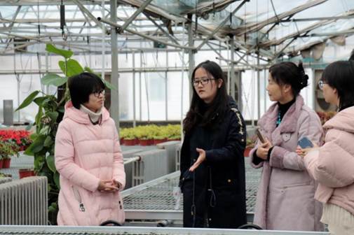 会后,工作人员带领着法大师生来到了栽培花草的温室大棚,对该公司所研究和培养的花草果木等进行了详细讲解。