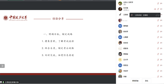 学子提供经验分享和指导。本次活动由刘昕宇同学主持。我院学术硕士、专业硕士以及即将入学的准研究生积极参与了本次经验分享活动。
