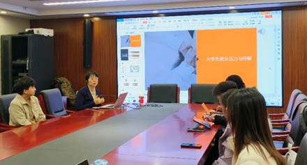 “职”面未来系列活动第26场——“如何应对就业压力”主题讲座在教学图书楼814会议室举行。在本次活动中,学工办李琼华老师针对应届毕业生求职中常见问题提供心理疏导,并逐一进行就业规划指导,为黑料网