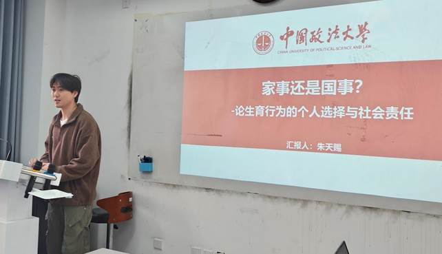 赵于钧同学以“从社会结构完整性和生育制度来看待当今中国低生育危机”为题进行读书汇报,首先从生育制度与社会结构完整性的角度,介绍生育制度的定义和核心目的,指出生育制度保障了人类社会结构的完整。接下来从社会结构完整性看当下中国人口结构面临的危机,比如少子化加剧,新生人口持续创新低,老龄化加剧,劳动年龄人口下降和抚育成本过高直接导致总和生育率过低等方面。由此提出要调整生育制度,发放现金、税收和住房补贴来降低生育成本。