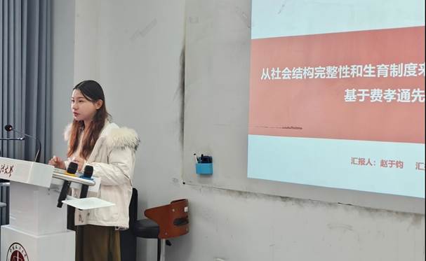 张国栋同学以“从生育制度中的三角结构变化看社会变迁”为题,从中国传统生育制度的功能出发,基于生物学角度和社会学角度介绍生育制度的定义和功能,并详细阐述由此产生的社会结构中的基本三角——婚姻、家庭与亲子关系,将婚姻概括为满足抚育子女、经济和两性关系三种功能的混合制度。此外,张国栋同学还对社会结构基本三角存在的内生性矛盾与带来的社会变迁进行分析和探讨。最后,他联系当今社会的具体情况提出,书中所持的社会本位观和功能论观点存在一定的待完善之处,需要根据变化的社会现实对生育制度进行进一步的研究。