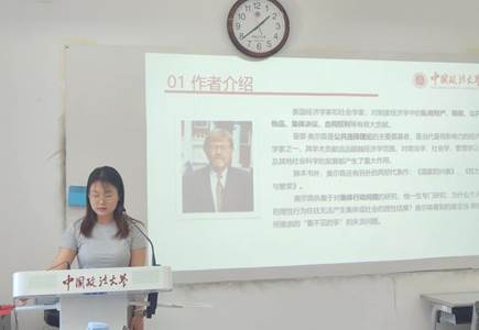 周霖同学点评道,李鹏举同学围绕“个体理性必然会形成集体理性吗?”这一问题进行论述,主要从集体行动的悖论、困境和破解,梳理了全书的逻辑脉络,并运用博弈论的相关知识进行分析。随后,将本书与法国心理学家勒庞的《乌合之众》一书进行对比,并指出了该理论的局限。总体来说,李鹏举同学的报告内容详尽、逻辑清晰,但是也可以结合部分文献进行论述。
