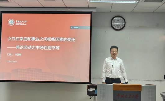 读书会最后,老师们对几位同学的汇报做了点评和总结。邓达老师对隔代照料的问题进行深入分析,她指出本书主要聚焦于西方女性的就业发展史,但中国当前的问题与西方有所不同,建议同学们思考中国的女性就业问题。周敏丹老师点评到,大家做读书汇报可以不局限于本书的主题,探讨女性就业本身,也可以做一些延展阅读和思考,如探讨女性就业和收入之间的关系、隔代照料和劳动力供给之间的关系、延迟退休政策与生育率之间的关系等,并建议大家在阅读和思考的过程中多引用一些专业文献来支撑和丰富自己的观点。司海平老师认为,在面对事业和家庭的选择时,大多数人会进行理性选择。她指出贪婪的工作符合企业的利润最大化目标,让女性有更多的时间参与到贪婪的工作中,同时也需要政府的努力。张弛老师提出本书有助于启发大家学习将典型事实提炼出来进行研究的方法,构建因果关系来进行分析。熊柴老师提到在中国劳动力市场女性劳动力参与率较高的现象。赵文睿老师就女权问题展开探讨,分析经济事件与政治制度之间的关系。