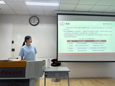 2023级政治经济学专业的蔡雨颖同学以《告别 “人口红利依赖”:人口负增长时代如何应对挑战》为题进行了汇报。她认为中国人口负增长这一趋势由长期低生育率驱动,经济压力、高养育成本、性别平等困境及社会保障不足等因素加速了生育意愿下降。她指出人口负增长从供给侧导致劳动力短缺、资本回报率下降,从需求侧抑制消费,加剧经济增长挑战。然而,机遇仍存,包括通过提升人力资本、推进户籍制度改革、改善收入分配及建设福利国家等措施,有望缓解老龄化压力并释放新的发展潜力。