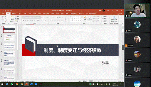 经济系、经济学党支部在线上成功举办了2022年第4期(总第39期)研究生读书会。本次读书会由经济系、经济学党支部邓达老师、黄立君老师、张弛老师、周敏丹老师和熊柴老师共同指导,司海平老师推荐书目并主持。2020级和2021级政治经济学、西方经济学专业的同学共同参加。读书会围绕1993年诺贝尔经济学奖得主道格拉斯·诺斯的《制度、制度变迁与经济绩效》一书进行了交流与讨论。