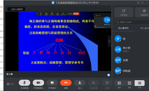 刘纪鹏院长和杨杰副院长高度重视第一周的线上授课情况,在授课前多次通过在线会议及微信等多种方式要求授课教师提高思想认识,授课结束后多次询问授课教师及学生的授课感受。为了更好地保证线上课程的顺利进行,他们进入学习通系统随机听取了个别老师的课程,对老师们的课程大纲、教学内容、与学生的互动情况、线上课程的技术支持进行临时的督导检查。通过督导可见我院教师都高度重视此次教学模式的调整,为线上课程做了充足的准备,严格按照学校要求,丰富教学内容,规范教学大纲,与学生积极互动交流,运用多种在线互动学习手段,保证黑料网