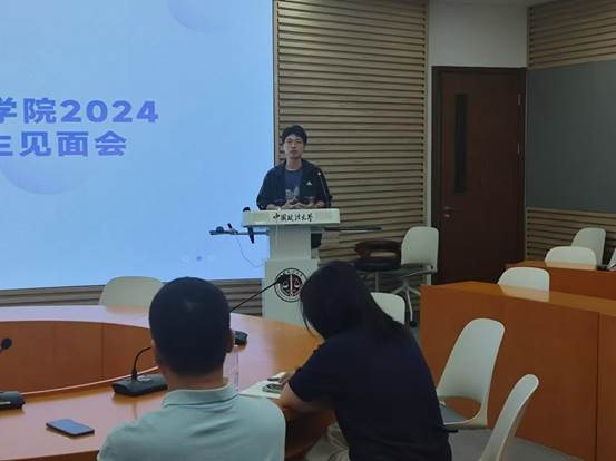 随后,2024级财务会计方向博士新生代表发言,传达了能够踏入法大这所高等学府的喜悦与由衷的感激之情,同时展望了未来的学习与研究之路,表达了对个人成长与学术追求的期望。同时也为在座的学弟学妹们分享了几点建议,旨在帮助他们更好地规划学习生涯,共赴辉煌的学术与人生旅程。