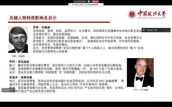 梅茹煜同学围绕经典商业案例《门口的野蛮人》展开深度讨论,再次聚焦杠杆收购中的资本博弈与公司治理问题。她首先解析了案例核心脉络,将其分为三部分:第一部分为人物与公司背景,约翰逊凭“左右逢源、激进冒险”特质,推动三家公司合并为雷诺兹-纳贝斯克集团;KKR为杠杆收购公司,因创始人理念分歧(科尔伯格主善意收购,克拉维兹与罗伯茨倾向恶意收购),最终科尔伯格被排挤出局。第二部分为收购背景:美国经济衰退致集团股价从70美元/股跌至40美元/股;KKR先提MBO遭约翰逊拒绝,后约翰逊因股票回购、新品研发无效,转而决定发起MBO。第三部分为收购博弈:约翰逊联合协利证券以75美元/股竞标,因董事会消息泄露引发多方参与;KKR怒推LBO,联合三家机构组建团队,因内鬼泄露估价被迫竞标,双方因承销商选择合作破裂。首轮竞标后,第一波士顿银行借税法漏洞提议高价但方案不完善,董事会同意二次竞标;管理层误信KKR不参与,报价仅101美元/股,KKR“回马枪”报106美元/股;后续“三局两胜”中,管理层报112美元/股,KKR提至109美元/股,董事会因现金比例高、融资可靠及相关承诺最终选KKR,收购总价250亿美元。后续约翰逊获5300万美元离职,KKR因债务问题六年后转手集团,获利微薄。