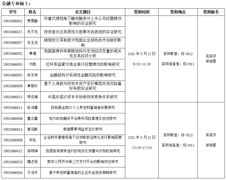 硕士生毕业论文答辩拟定于2021年5月13日--2021年5月20日在学院路校区进行。
