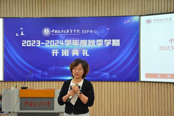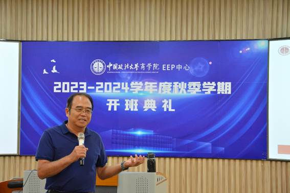 柴小青教授作为授课教师代表做了热情洋溢的发言,“似曾相识燕归来”,老师看到的永远是青春朝气的面孔。我们EEP中心的每一届学员有一个共同点就是先进入社会工作生活,经过社会的洗礼后又回到了学校学习,每个人都有一颗进取的心,归来仍是少年。从大的意义上说,我们都是为中华民族的伟大复兴而读书,对于每个个体来说选择学习就是选择挑战,在如何处理好工学矛盾,家庭和学习时间的分配方面要下点儿功夫。有句广告语说的好,男人要对自己狠一点,女人要对自己更狠一点。