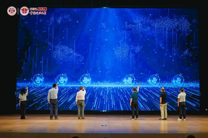 2024级专硕法商实践课堂启动仪式正式拉开帷幕。在庄重的氛围中,李欣宇教授、熊金武教授、胡继晔教授、肖富荣老师、戴建华教授及学生代表李敬研共同按下启动按钮,标志着这段充满挑战与机遇的学习旅程正式启程。